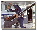 Now we were ready to search for radio-transmitter birds. First, we would fly over the Island. Here is Larry and our pilot, Ed Swayda of Skyward Aviation, attaching an antenna to the wing strut to pick up signals from birds on the ground.