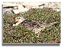 Then, the big discovery! A Knot with a transmitter at a nest. It was sitting tight on four eggs. Finally, one small piece of the Red Knot breeding puzzle was in place.