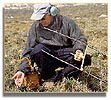 Ground searches initially turned up a transmitter but no bird! It had fallen off. Here is Larry Niles with the radio transmitter. The aerial and receiver are also visible. We were getting other signals still, so we kept searching.