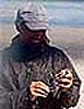 | Ground searches initially turned up a transmitter but no bird! It had fallen off. Here is Larry Niles with the radio transmitter. The aerial and receiver are also visible. We were getting other signals still, so we kept searching. |